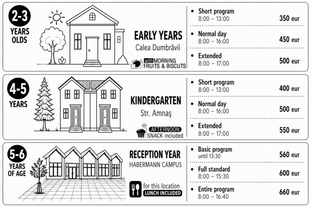 Educational fee covers September to June programe and the access to Summer School, during the whole month of July;