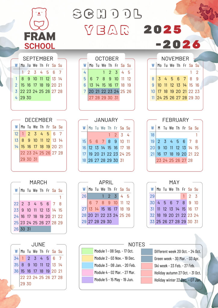 Calendar for the 2025-26 School Year